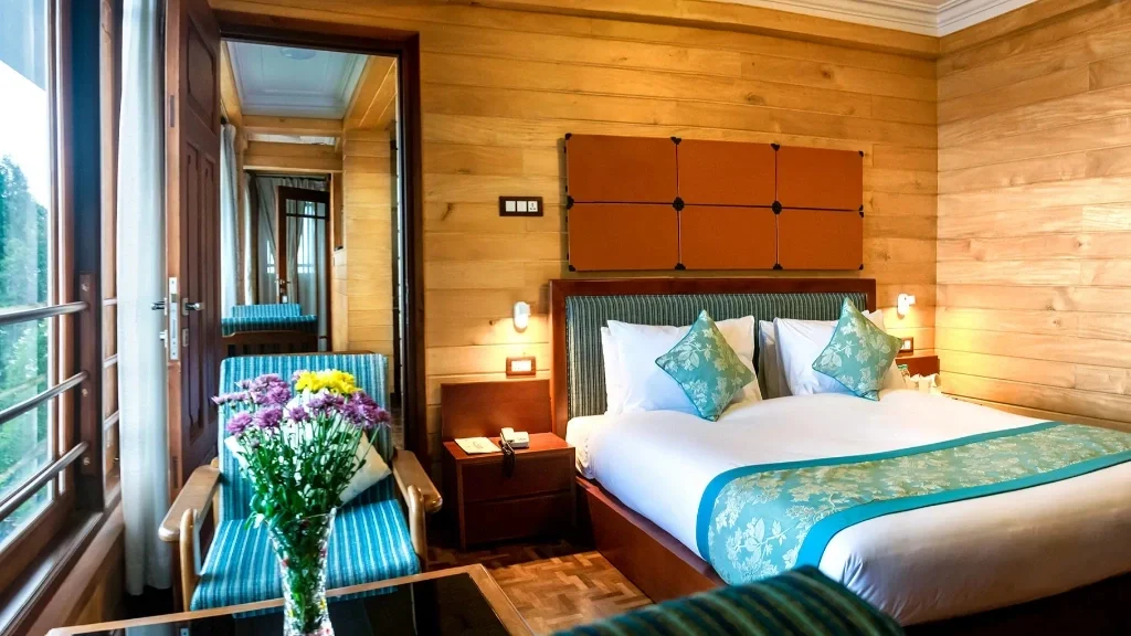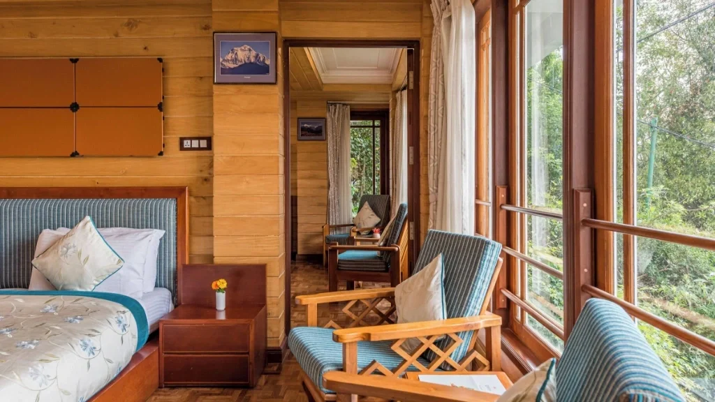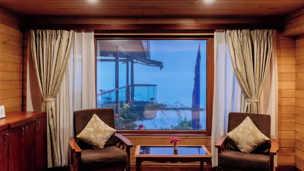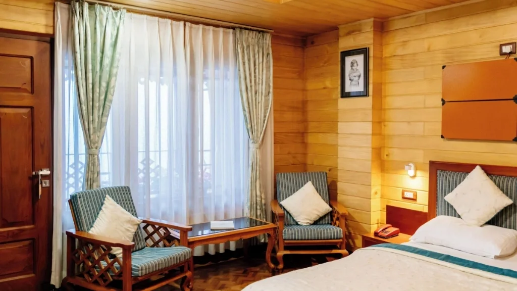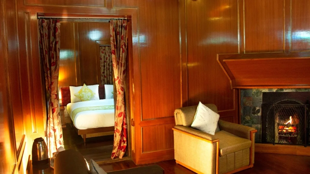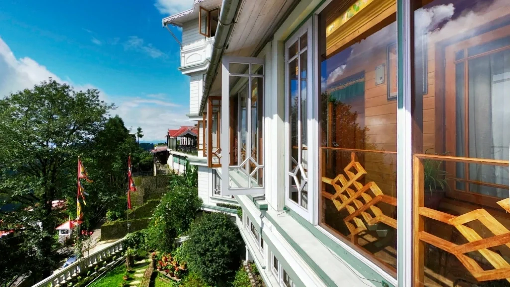 Colonial Ambience Without Pretension The architecture and interiors reflect British-era influences: Sloped roofs with red or green shingles, Stone pathways winding through garden patches, White-trimmed balconies and flower boxes. A cozy lounge area with cane chairs and old-world decor. There are no TVs blasting in every room, no elevators, and no plastic distractions & just peace, conversation, books, and mountain light.