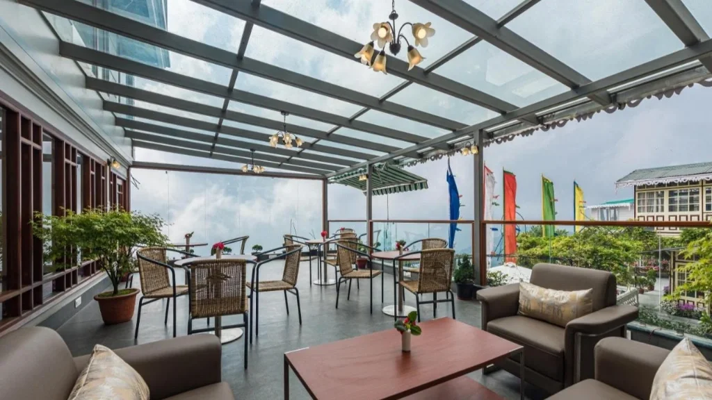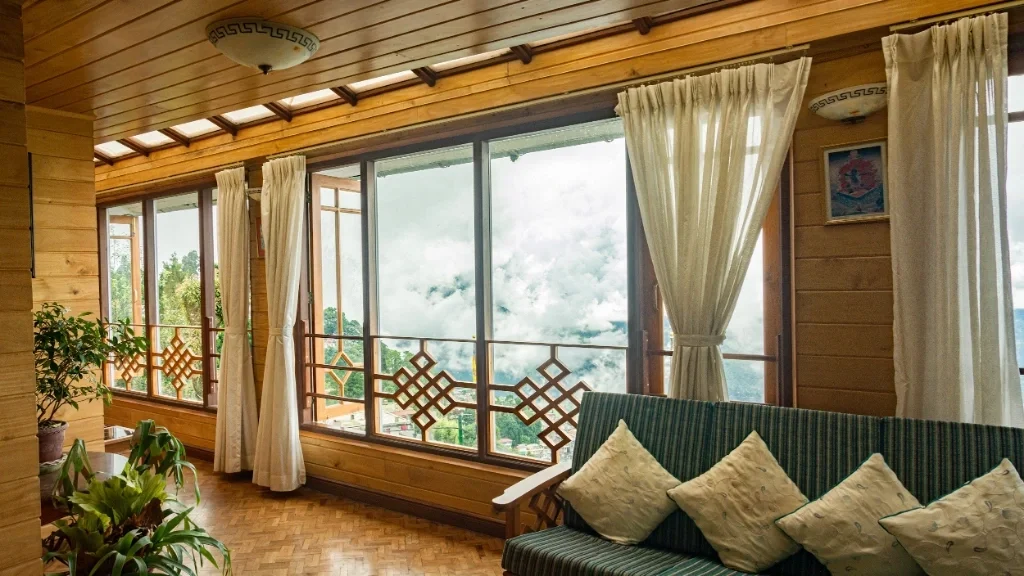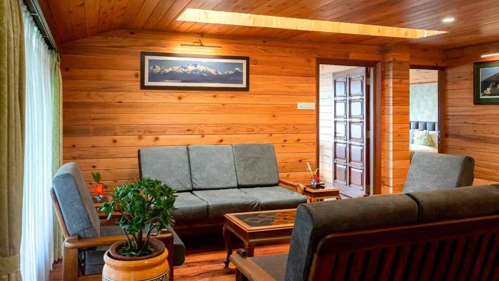 A Setting That Soothes Located on a quiet forested slope, the resort enjoys: Sweeping views of the Kanchenjunga range. The fresh scent of pine and earth Crisp, clean air & especially between October and March Occasional sightings of Himalayan birds and butterflies. The property is just far enough from town to feel secluded, yet easily accessible by car or a short walk.