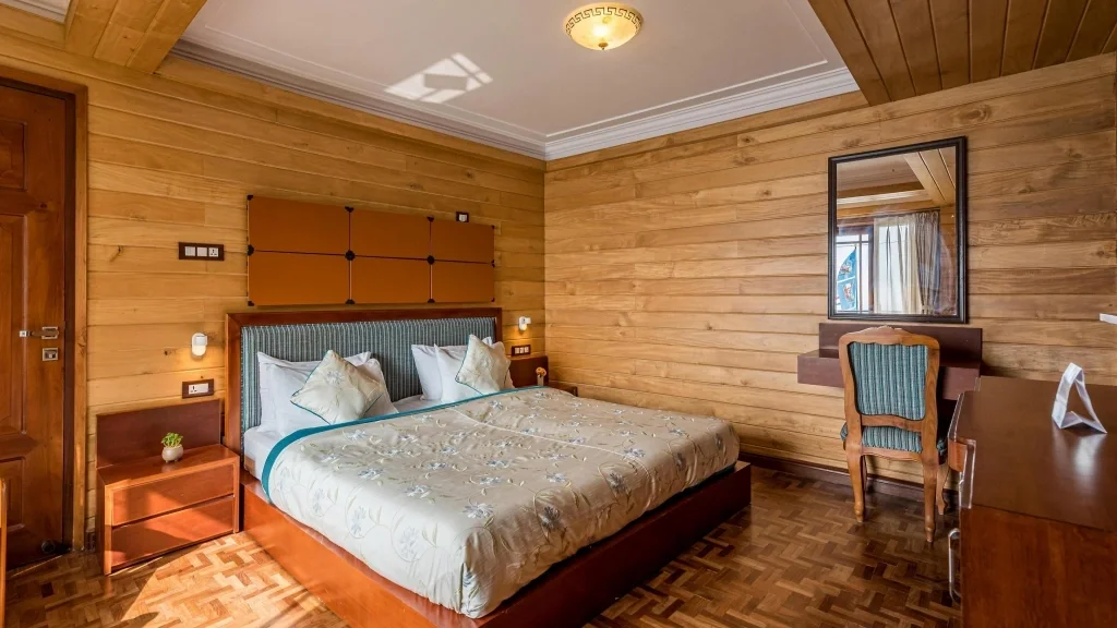 Rooms: Comfort Meets Character Dekeling Resort isn't large or lavish & but every room feels like a peaceful cocoon. Here's what to expect: Wood-paneled interiors that feel warm even in winter, Large windows with mountain, forest, or garden views, Electric blankets and room heaters during colder months. Simple but clean attached bathrooms with 24/7 hot water, Fireplaces in selected premium rooms, Each room is unique, with handmade quilts, vintage lamps, and minimal clutter to encourage a truly relaxing stay.