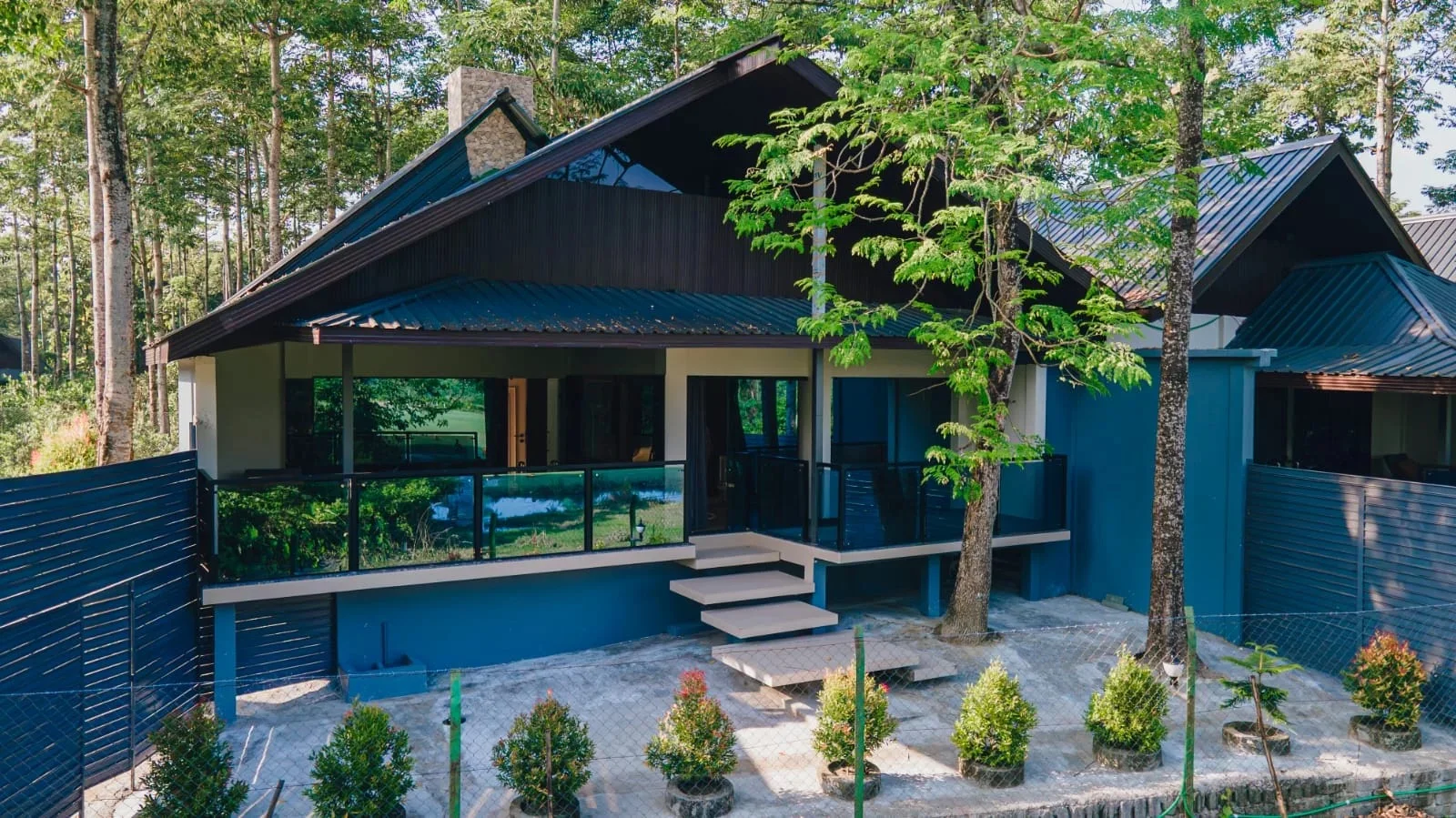 Landscaping and proximity to forested areas encourage guests to spend time outdoors, adding to the overall sense of tranquillity.