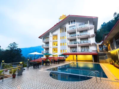 Luxury mountain hotel in Pelling with scenic views, pure veg dining, and modern comfort.