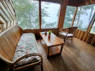 The accommodation at Neora Valley Jungle Camp is designed to blend into the forest environment while providing basic comfort and shelter. The camp offers cottage-style rooms constructed using simple materials suited to the climate and location. These cottages are positioned to offer views of the surrounding forest and hills.