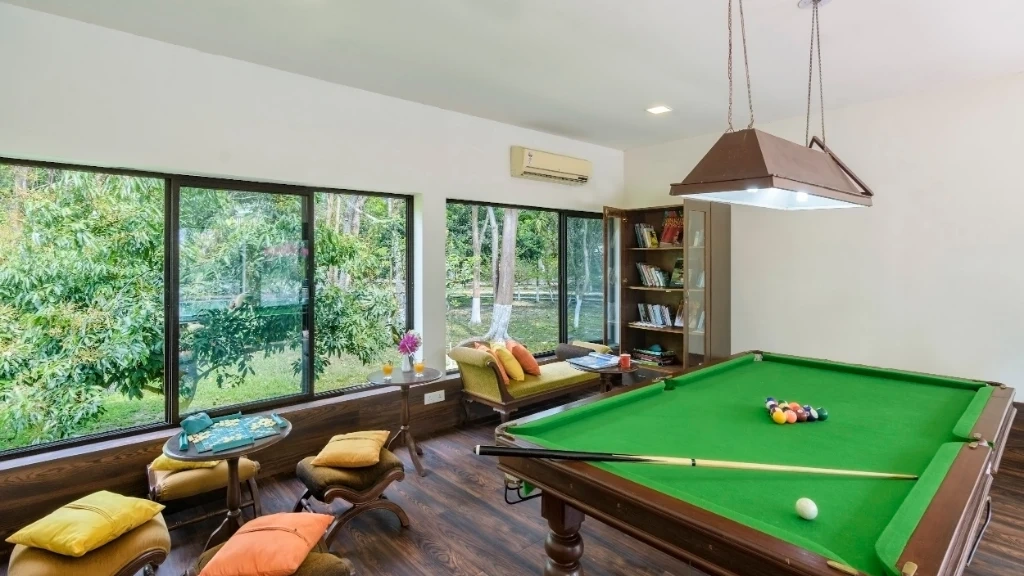 Accommodation: Comfort Without Compromise The retreat offers a selection of well-appointed cottages and rooms, each designed to blend into the landscape while offering all modern amenities. Room features: Spacious king-sized beds and large windows, Private sit-outs or balconies with forest/river views, Air conditioning and fans (a rarity in the region), Attached bathrooms with running hot water, Organic toiletries and bamboo detailing, Writing desks and hammocks (in some rooms). The design leans eco-conscious, with earthy tones, natural textures, and open layouts to connect you with your surroundings.