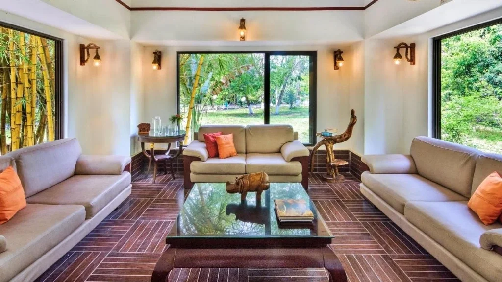 Each room is positioned to provide views of the surrounding forest, gardens, or riverine landscape. The interiors are simple yet elegant, reflecting the spirit of a forest retreat while providing all essential modern comforts.