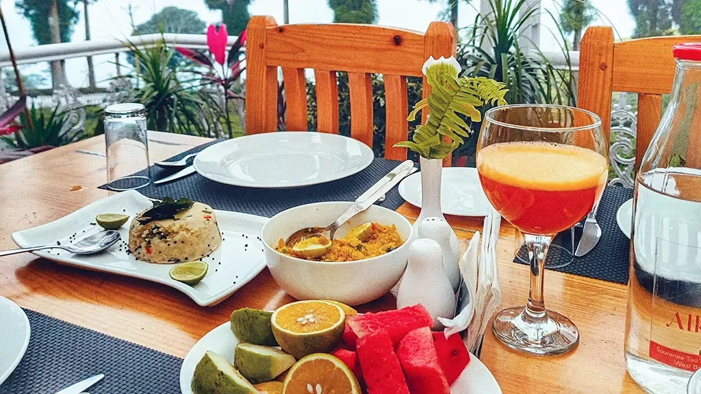 Dining at Sourenee Tea Estate & Boutique Resort focuses on fresh, homely meals served in a relaxed environment.