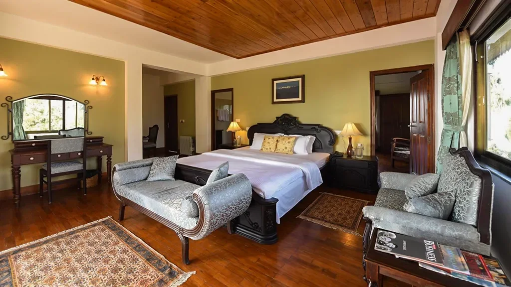 The resort combines classic hill architecture with boutique style interiors. Warm, elegant, and intimate, the ambience is designed to make guests feel at home.