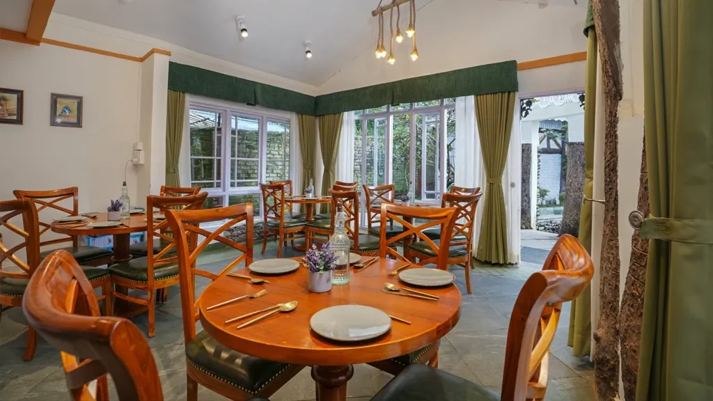 Dining at the resort is a relaxed experience, often complemented by views of surrounding hills and tea gardens. Guests can enjoy unhurried meals in a peaceful environment.