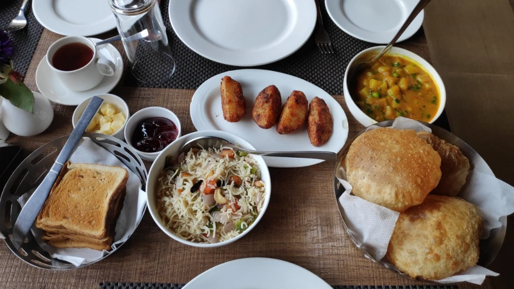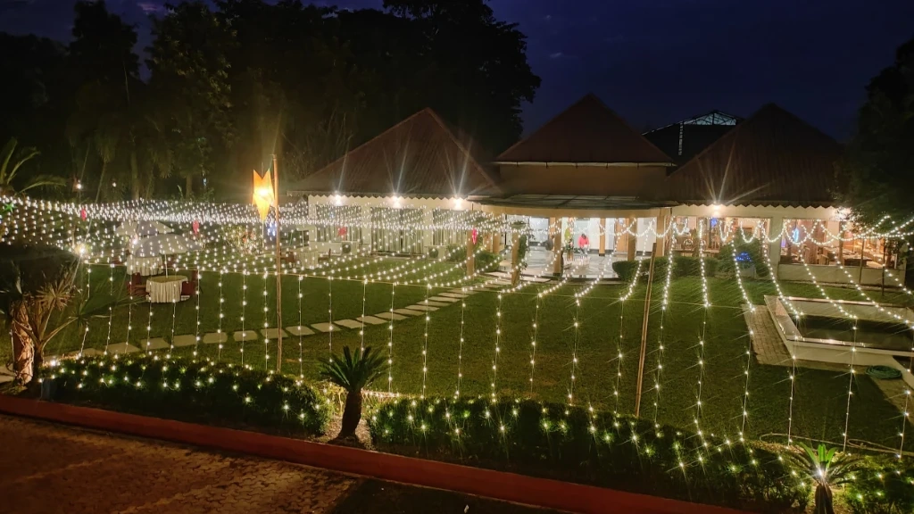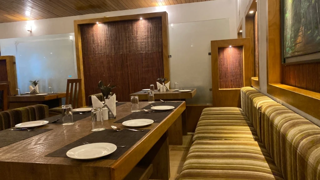 Gastronomy in the Green The in-house multi-cuisine restaurant offers a refined dining experience: Breakfast buffets with both Indian and Continental options. A la carte lunch and dinner featuring Bengali, North Indian, and Oriental dishes. Live barbecue evenings around the bonfire (on request). Special dietary menus available on prior notice