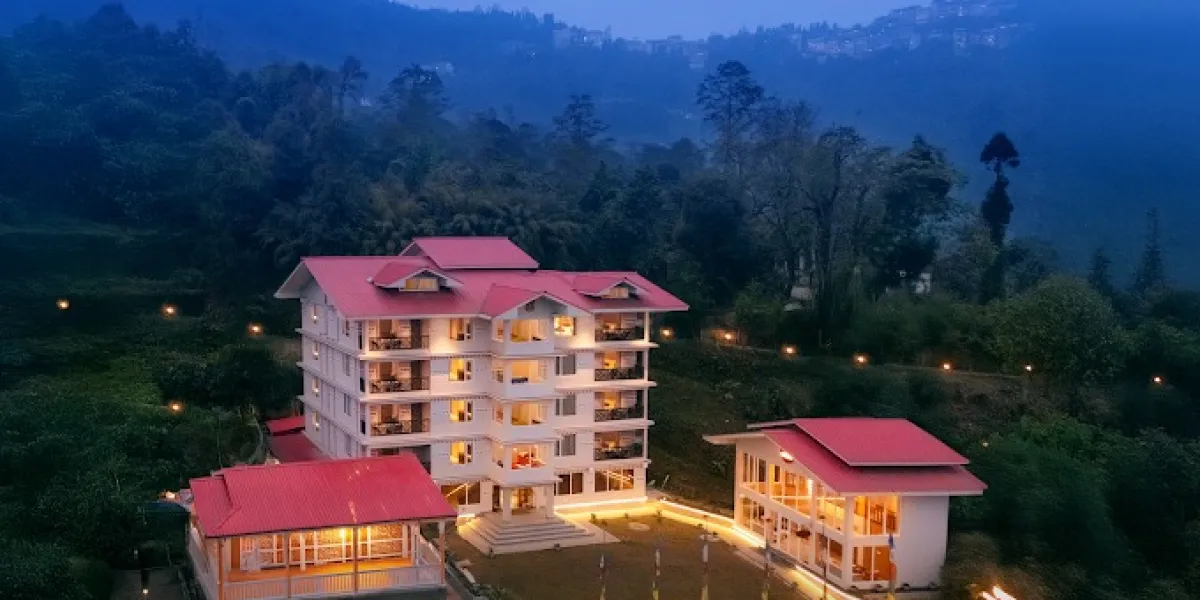 The resort stands out for its scenic hillside location in Pelling, offering uninterrupted views of hills and forests that define the region's landscape.