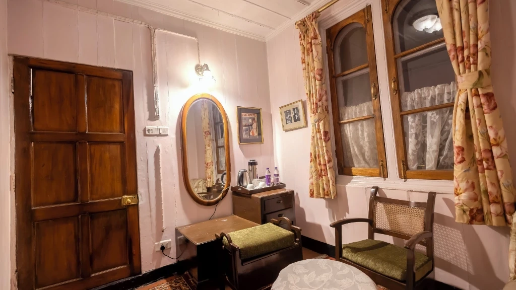 Heritage Rooted in the British Perched on the edge of the famous Observatory Hill, Windamere Hotel overlooks Darjeeling valleys, forests, and snow-capped peaks. Its architecture and interiors preserve the colonial way of life: Whitewashed cottages with gabled roofs, Polished wood interiors with antique furniture, English gardens lined with rhododendrons and hydrangeas, Log fireplaces, vintage lamps, and brass bedsteads, Framed portraits and photographs from the 1800s and early 1900s. The hotel feels less like a commercial property and more like a heritage museum where you live in luxury.